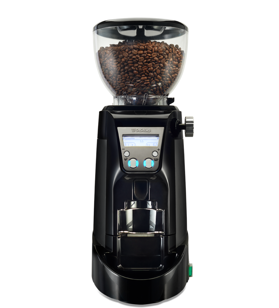 El molino Enea On Demand, muelas planas de 64 mm dosifica de forma automática para espresso sencillo y doble.